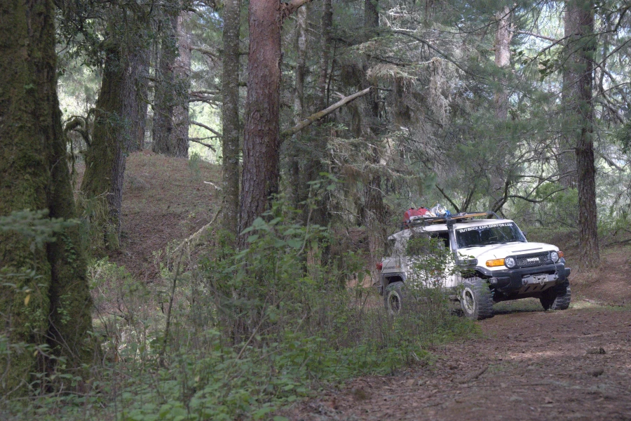 - At kilometer 116 (mile 72) there is a turn off to the right onto a dirt road that leads up into a forest of old growth trees. It is a great place to camp as the road is deadened and there is no through traffic. It is rare to find such huge trees anywhere close to human habitation, so it is a rare find. The place is very peaceful and beautiful. This spot is just 2.5 kilometers (1.5 miles) after the Atepec Cabins at kilometer 113.5 (mile 70.5)).